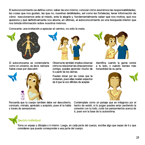 Los manuales se centraron en temas de cuidado personal para jóvenes 10 y 13 años, y jóvenes entre 14 y 19 años.