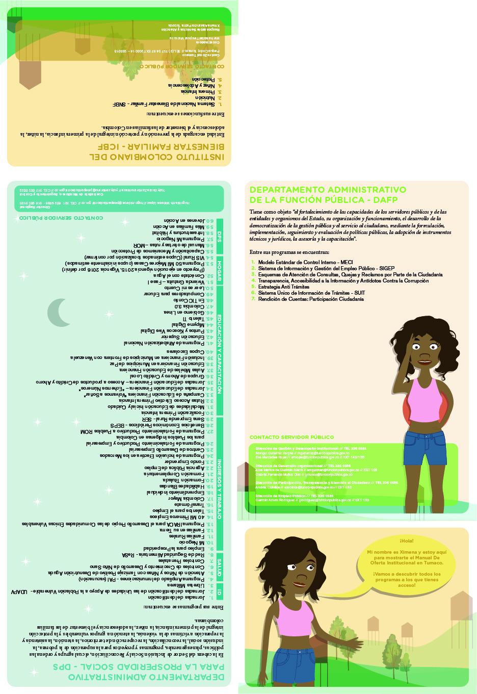 A petición de el Departamento de Función Pública de la República de Colombia, junto a Laura Forero, desarrollamos 5 cartillas que brindaban