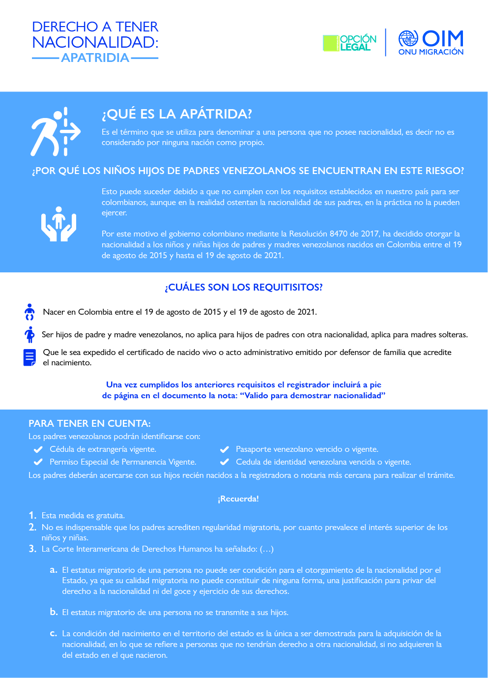 El proyecto está compuesto por 10 infografías que explican la oferta de servicios en temás de Apatridia,